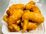 5 wings with fries and can of soda.